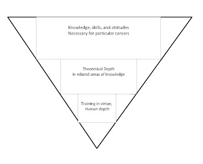 What distinguishes a university from a technical school more than anything else is the bottom part of the triangle. Without a sense of history, of culture, of art, of virtue, of the place of science in the world we live, we cannot intelligently participate in the governing of society. The problem is that these areas are often not taught in ways that make their relevance clear, nor are they usually taught in relation to a person's trajectory in life.